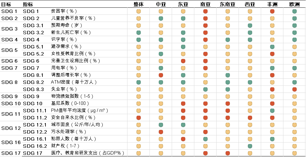 注:绿色表示该指标已实现,黄色表示该指标尚未实现,红色表示该指标实现的难度较大。